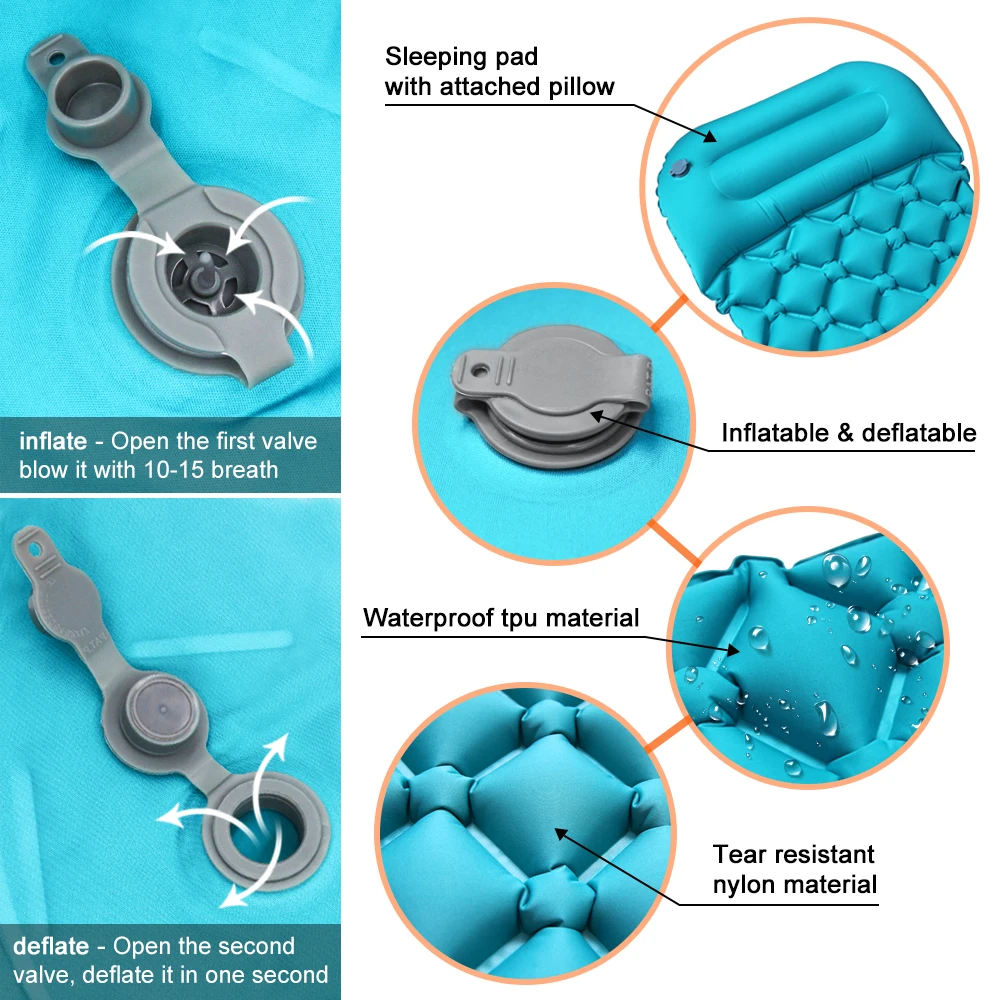 Спальный коврик поставляется с подушкой, вам не придется беспокоиться о перемещении подушки вокруг, когда вы отдыхаете
