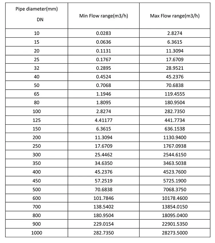 Pipe diameter, flow range of flow meter (range can be customize)