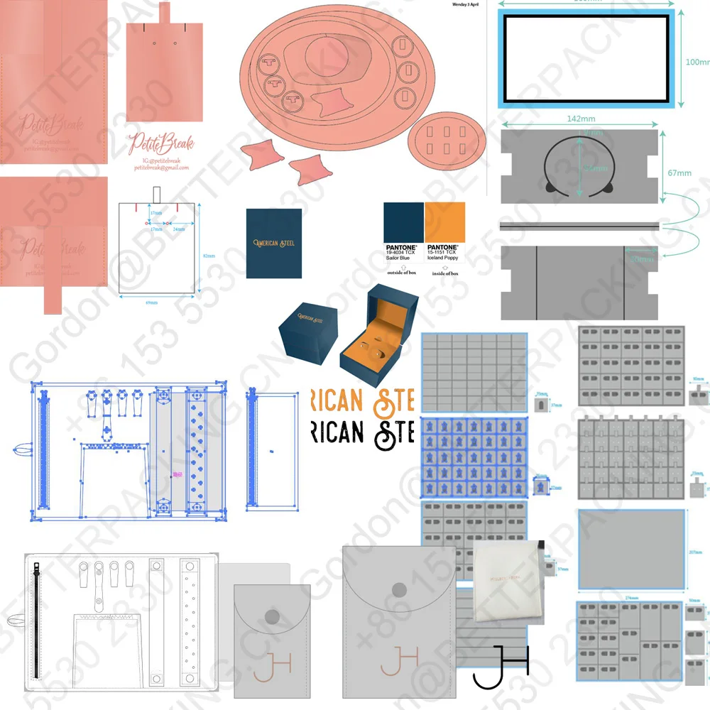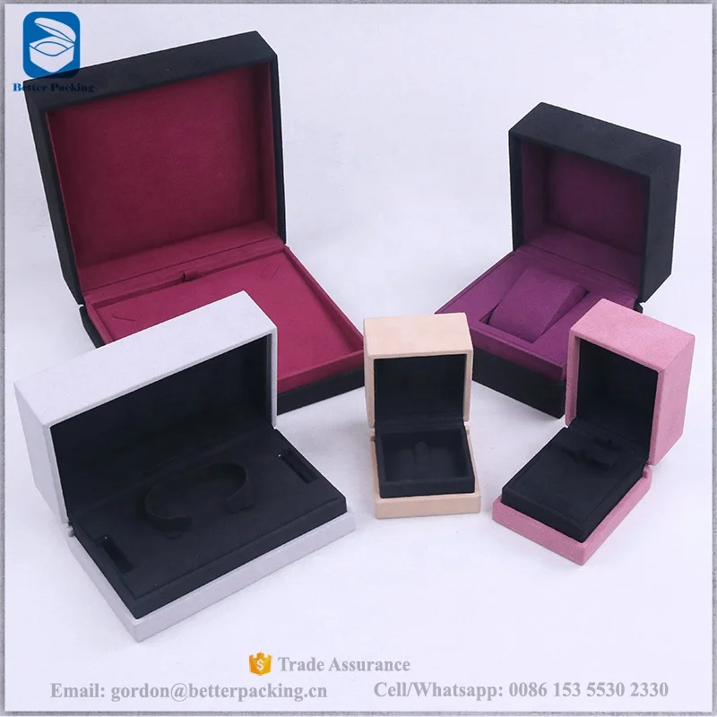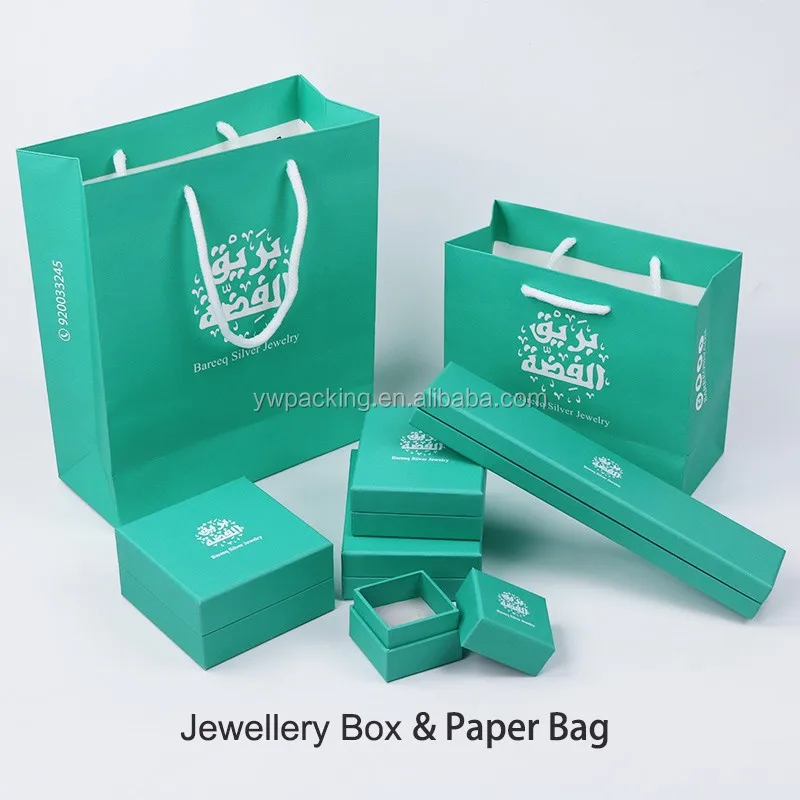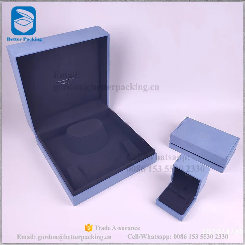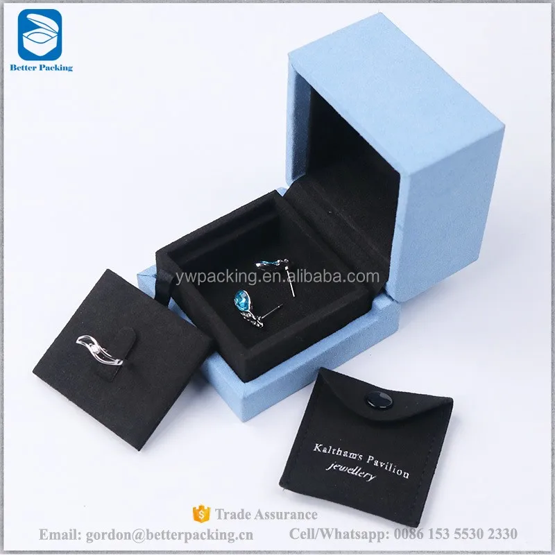 JBW700R faux suede light blue outer double sides insert pouch luxury box silver logo custom jewellery packaging