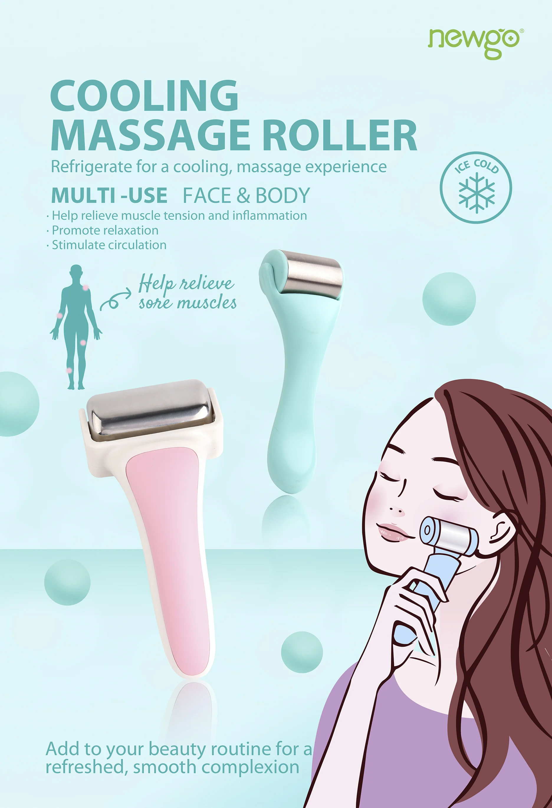Горячая продажа фабрика OEM обслуживание из нержавеющей стали охлаждающий Ледяной Охладитель ролик для массажа лица и тела