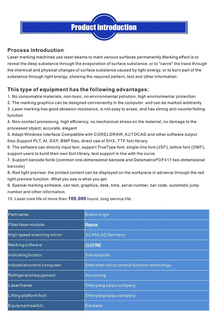 2. belongs to the non-contact processing, does not damage the product, no tool wear, marking good quality.