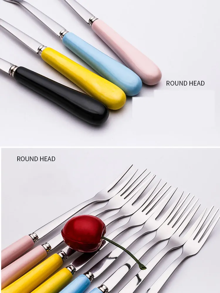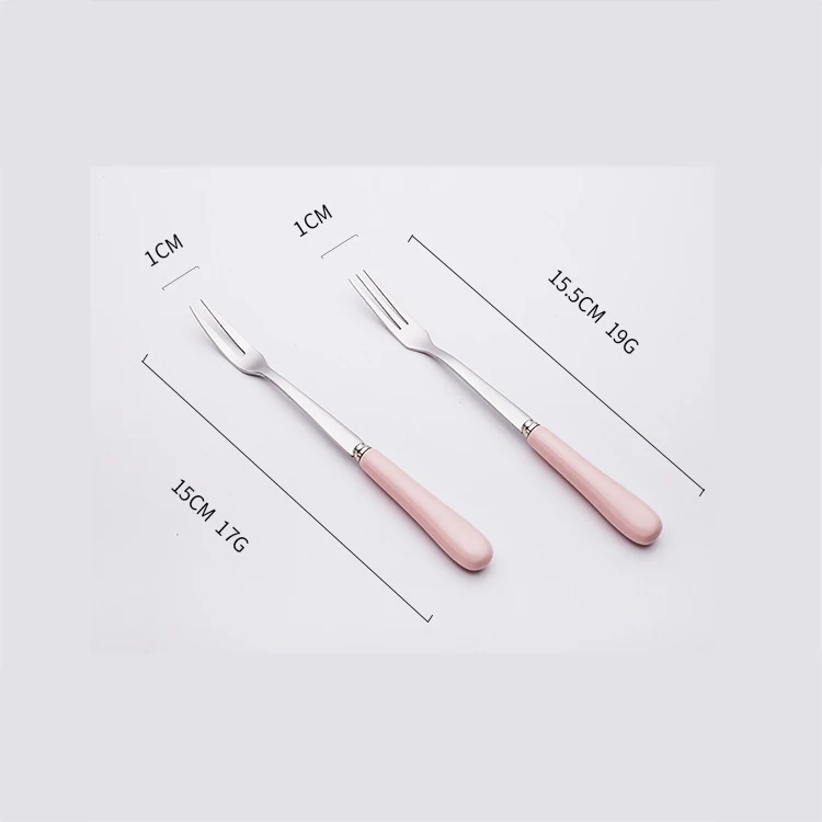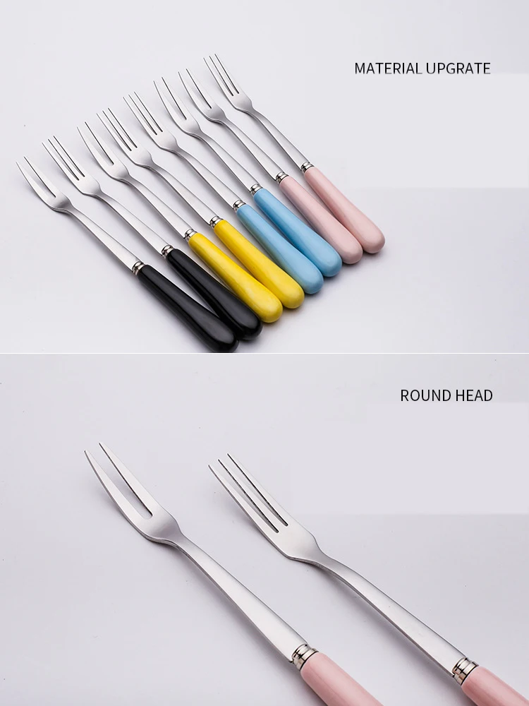 Высококачественная керамическая ручка с двумя и тремя зубцами, вилка из нержавеющей стали для фруктового пирога |