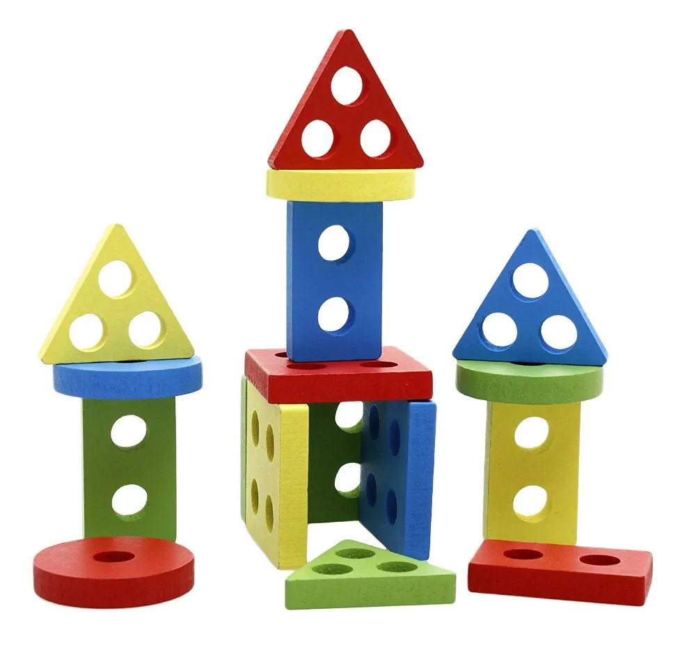 Wooden Puzzle Kids Toys Shapes Sorter Preschool Geometric Blocks Stacking Games | ||||||