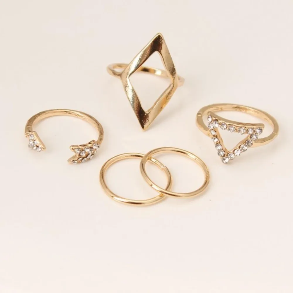 5Pcs/Set Punk Plain Band Finger Knuckle Rings Set Mid Finger Ring Diamond Thin Ring Fashion Gold Jewelry Sets Women