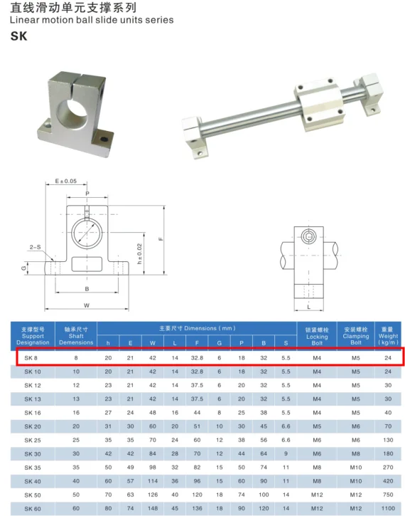 SK8 linear shaft end support match with SCS8UU , 8mm linear shaft for 3d printer