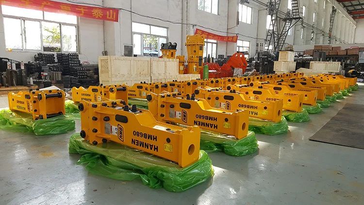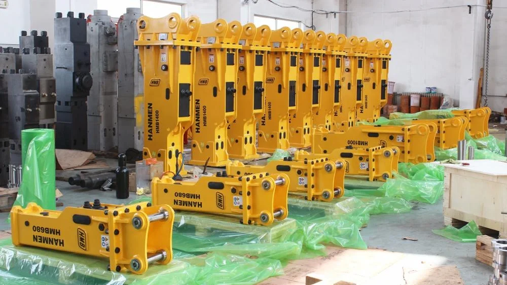 HMB Model | Operating Weight (kg) | Required Oil Flow (L/Min) | Working Pressure (Bar) | Impact Rate (Bpm) | Chisel Diameter (mm) | Hose Diameter (inch) | Carrier weight (ton) | Valve Ass'y Position (/) | ||||||||