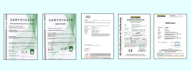 Our products have ISO22716, SGS, CE certificate, and some of them have design patent. With high quality products, reasonable price and perfect after-sale service to gain industry recognition, now are greatly appreciated in a variety of different markets throughout the world.