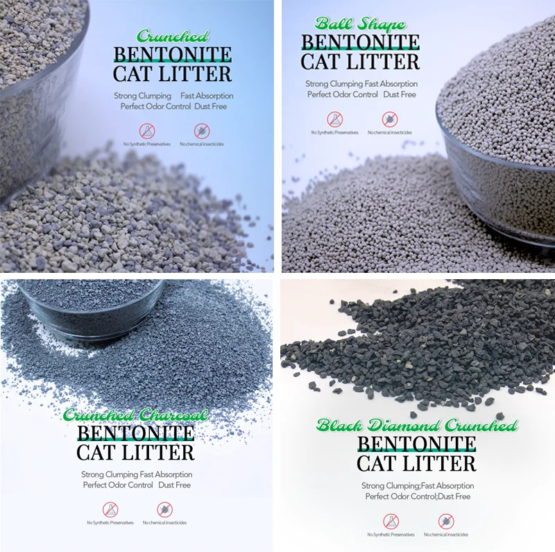The raw material of bentonite cat litter is 100% natural with no chemical added which can 100% guarantee the safety of human best friends.