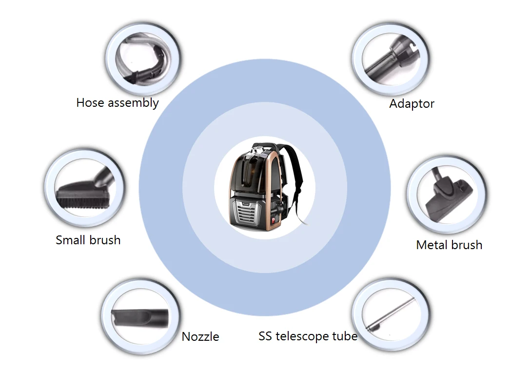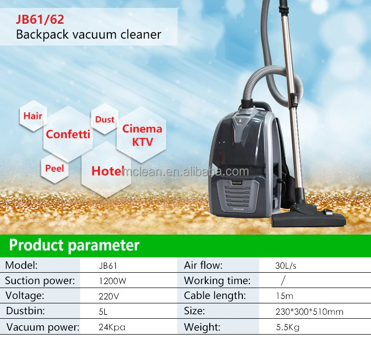 The backpack vacuum cleaner JB62 is the perfect machine for quick cleaning in hard-to-reach place, ideal for schools,commercial offices,department, stores, hospitals, institutions, airport terminals, churches, hotels and motels, restaurants, bars etc.