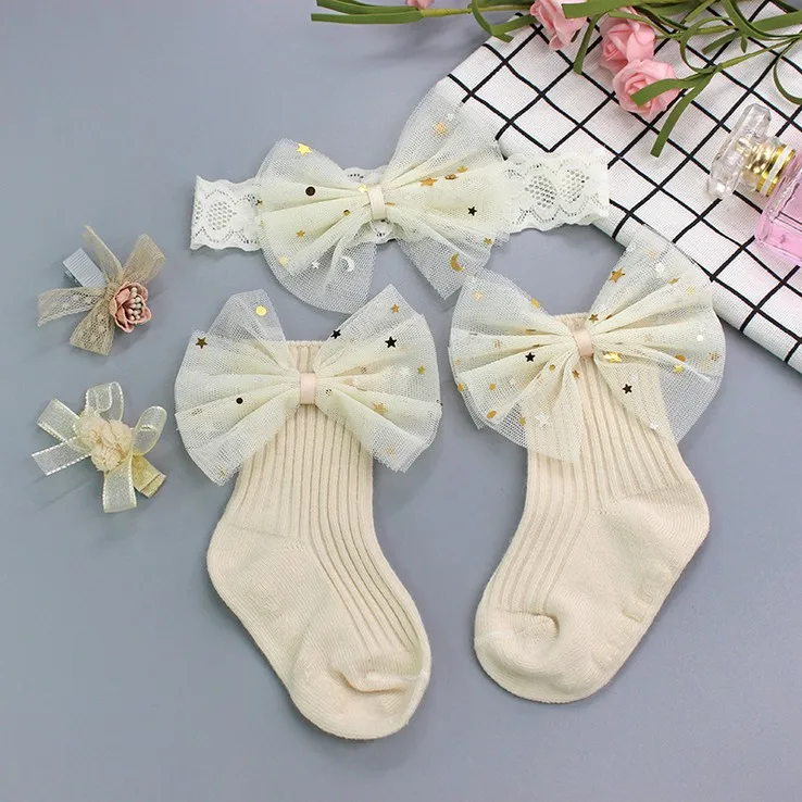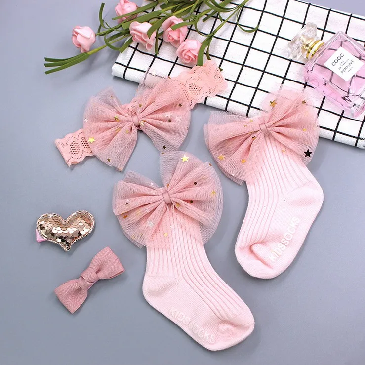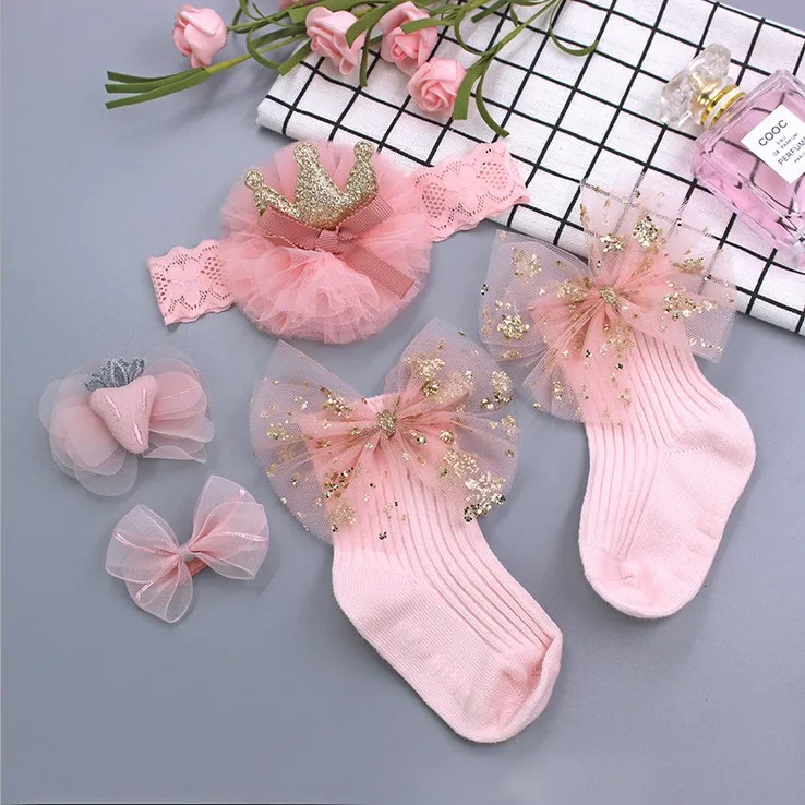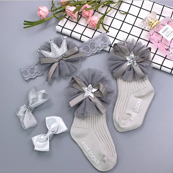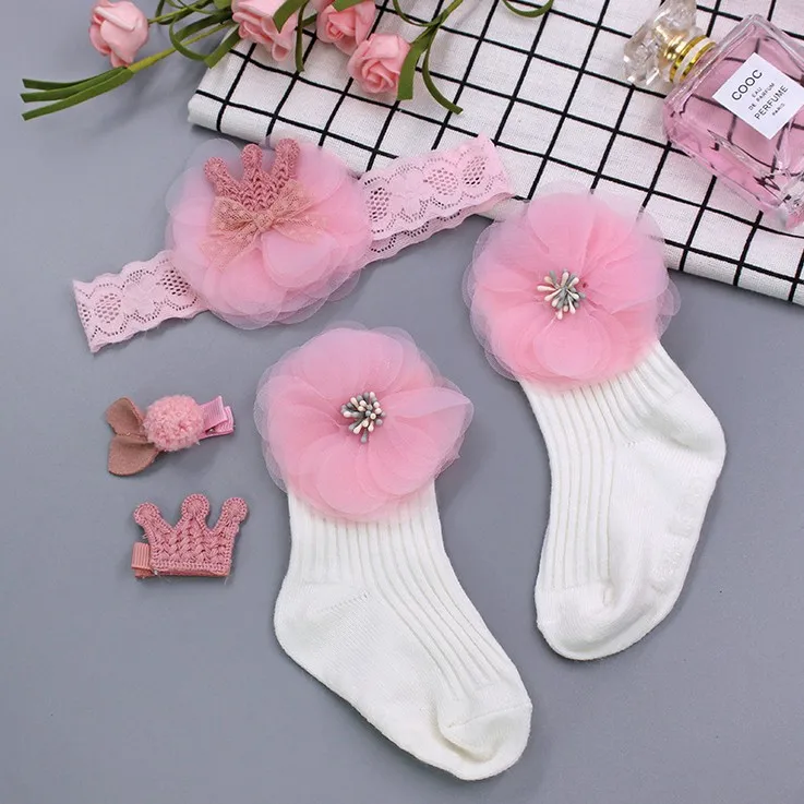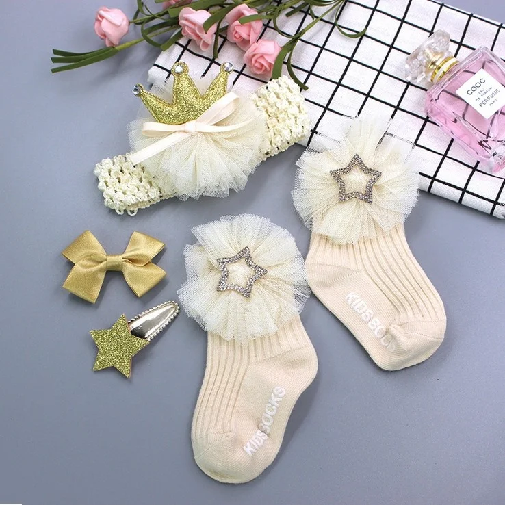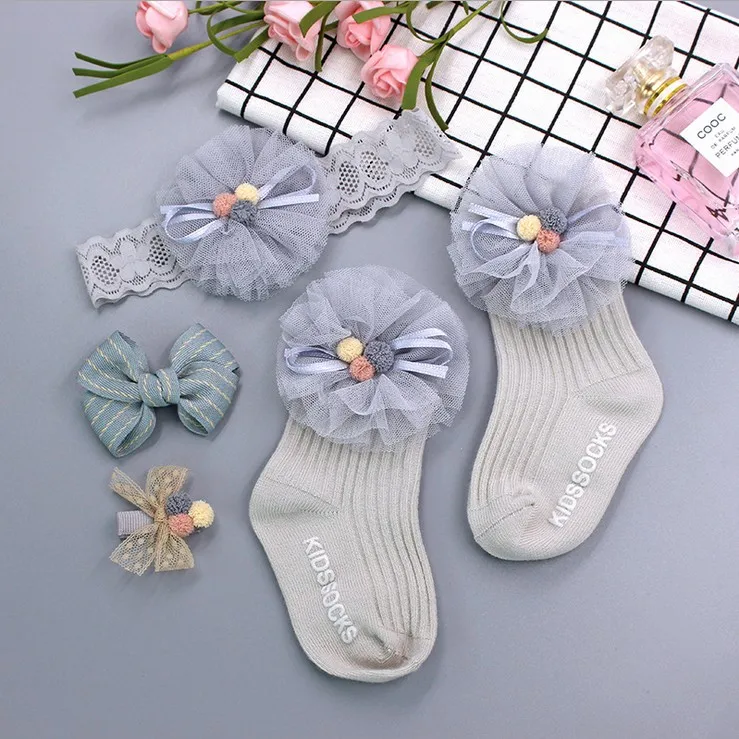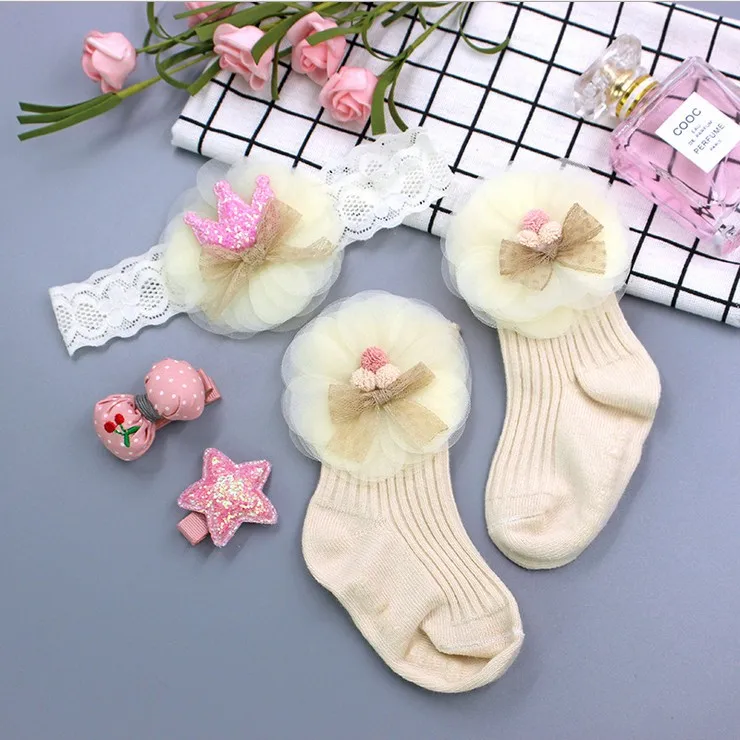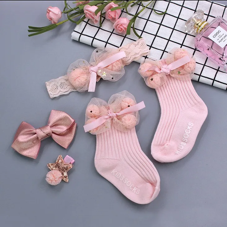 Description | Beautiful kids girls hair band hairpin socks set gift box packing | ||||||
