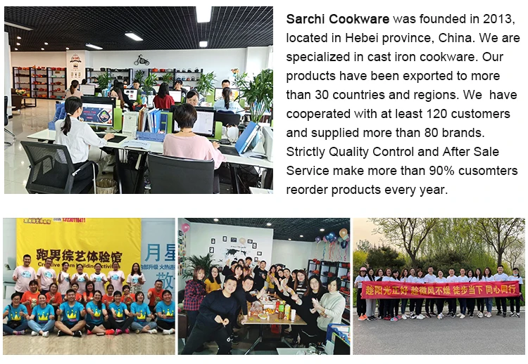 For enamel coating, it's physically non-stick, the non-stick level of our cast iron pans is level two, the non-stick effect is like the steamed rice pot. We can send you the video that show you how to pre-seasoned the cast iron pots and we also can offer you care instruction together with products and It is easier for your customer to know how to improve the non-stick performance.