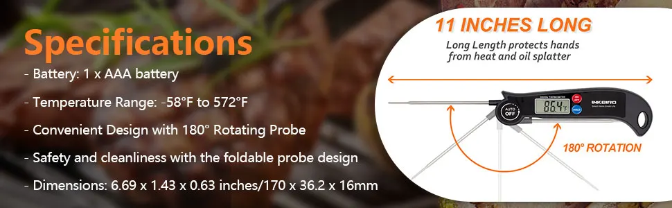 Applications | Works for Meat, Grilling, BBQ, Oven, Candy, Liquid, Milk, Smoker, and so on. |