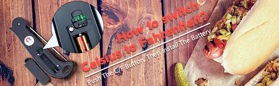 ✅ 【High Accuracy and Support both Celsius and Fehrenheit】 The temperature accuracy is ±1.8°F from -4 to 392°F. Tips for C/F switch: Open the battery cover, you will find a C/F transfer button, please push the C to F button, then turn off the unit, then turn on the unit, done.