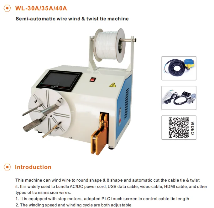 This machine can wind wire to round shape & 8 shape and automatic cut the cable tie & twistit. It is widely used to bundle AC/DC power cord, USB data cable, video cable, HDMI cable, and other types of transmission wires.