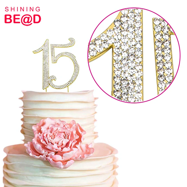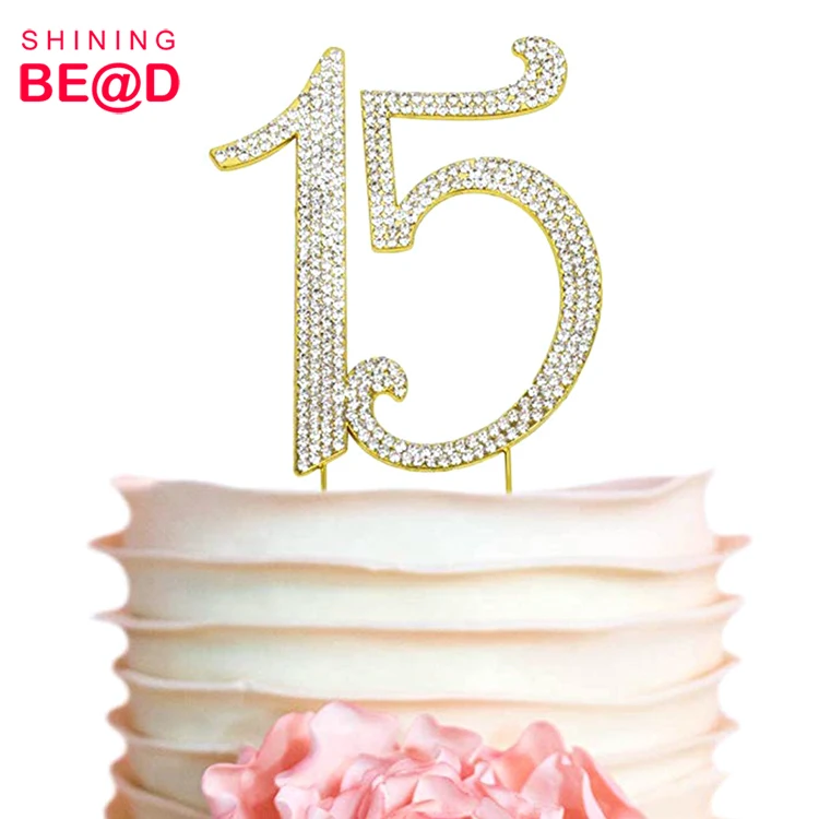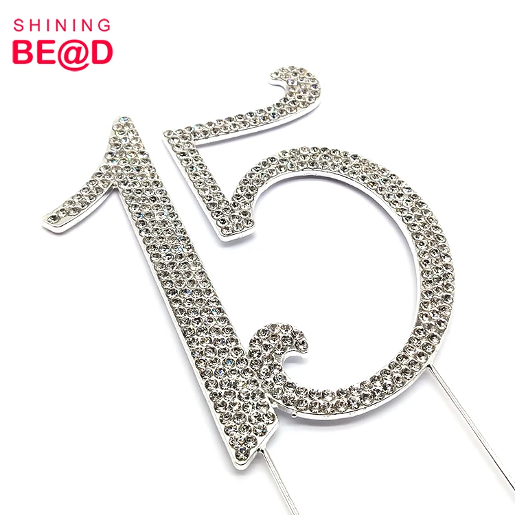 Wholesale Number 15 Crystal Rhinestone Cake Topper For 15th Birthday Decoration