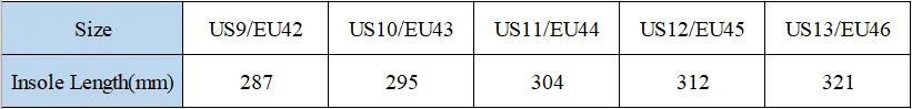 SIZE MEASUREMENT & CUSTOMIZE FIT:men’s wading boots have 5 American sizes from 9# to 13# for different demands. In order to have a pleasant shopping experience, please help send all your questions to us by e-mail and get them solved before purchasing.