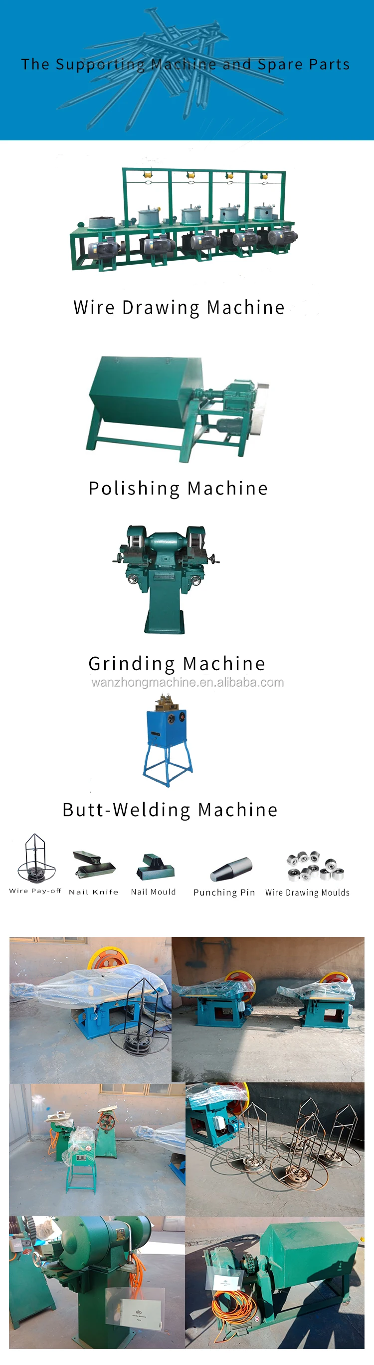SДерьмо или новые стальПроволока & rarr; Машина для волочения проволоки & rarr;Изготовление ногтей & rarr; Полировка & rarr;Отделочные гвозди