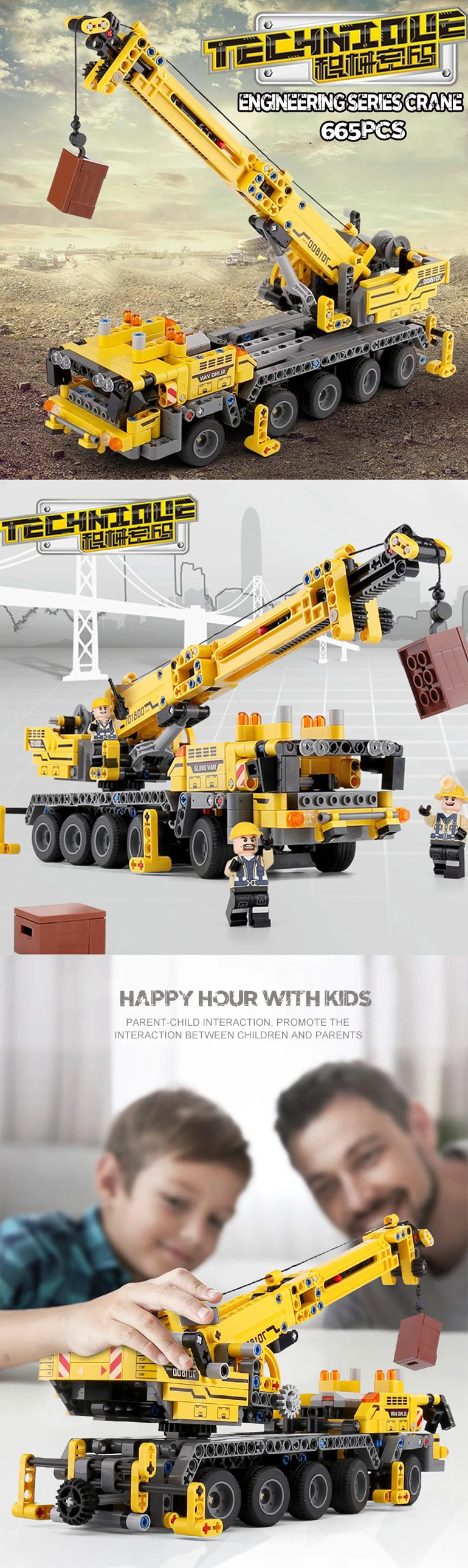Высокое качество Развивающие 665 шт БЛОКИ инженерные детские игрушки строительный грузовик