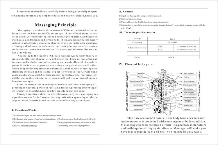 Massage parts | neck, back, waist, abdomen, buttocks, arms, thighs, calves |