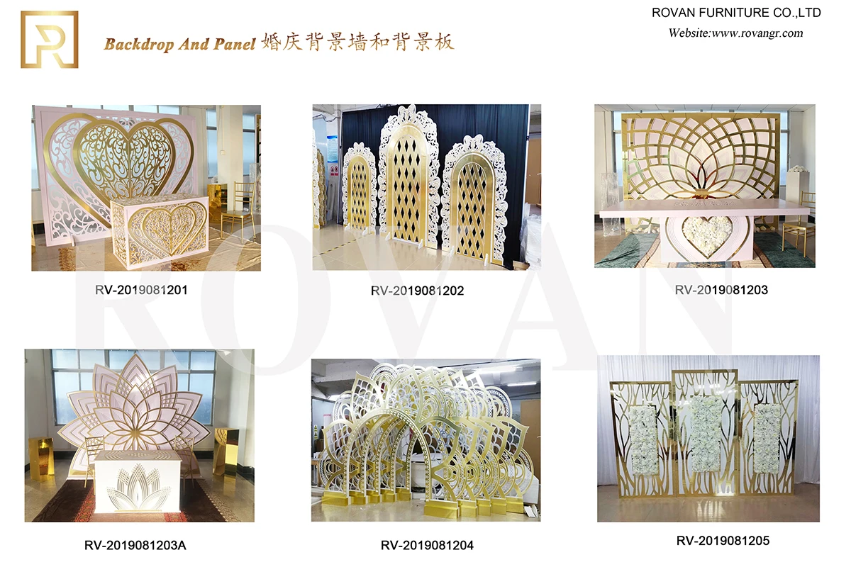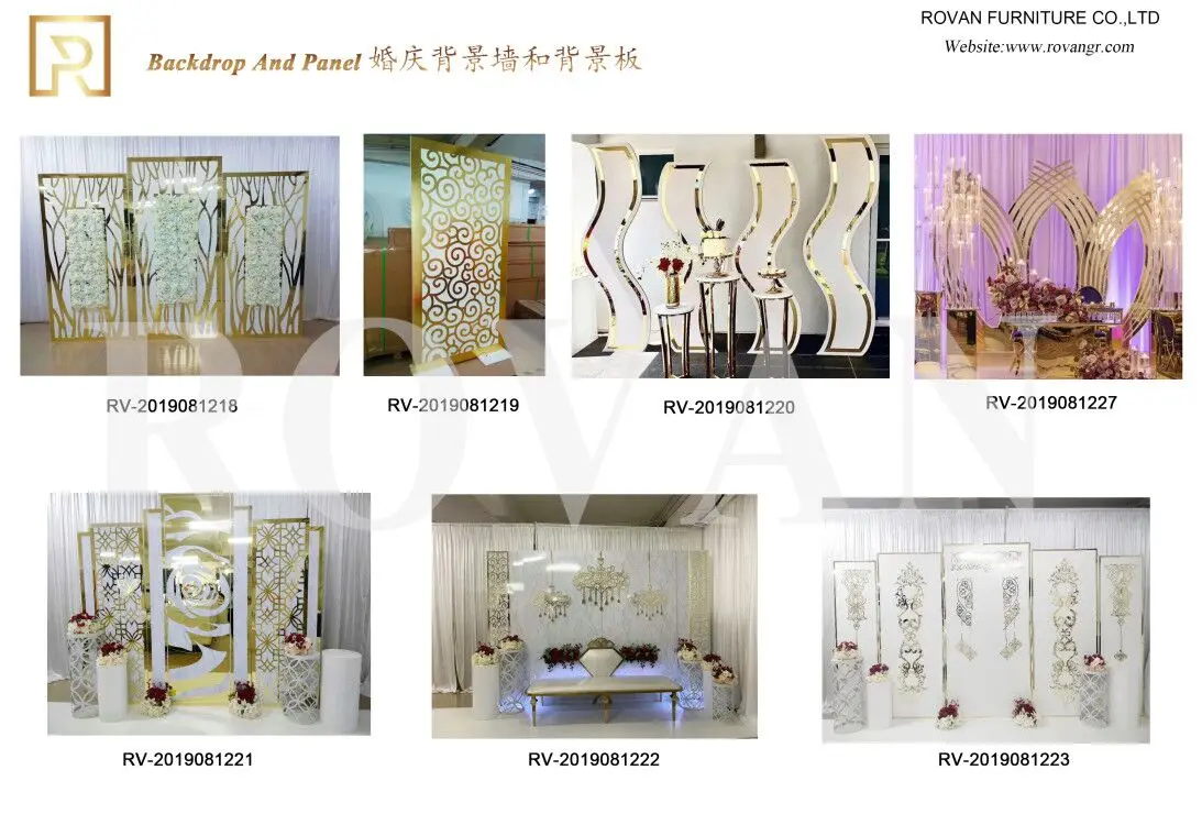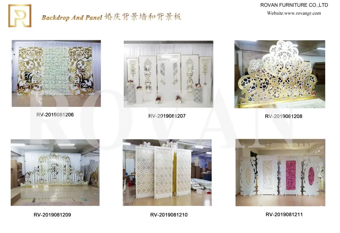 Rovan Furniture Co.,Ltd specializes in High-grade wedding furniture. Our products cover a wide range of options, including Stainless steel tables and chairs, MDF table, LED wedding table, Mirror wedding table, banquet tables and chairs, acrylic furniture etc. And also acceptting "customized service" for our customers.