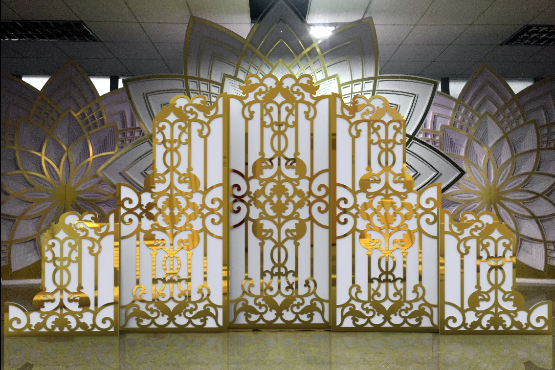 Banquet furniture gold carved white wall panel and backdrop for wedding and event stage