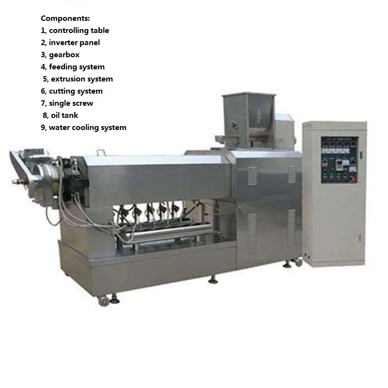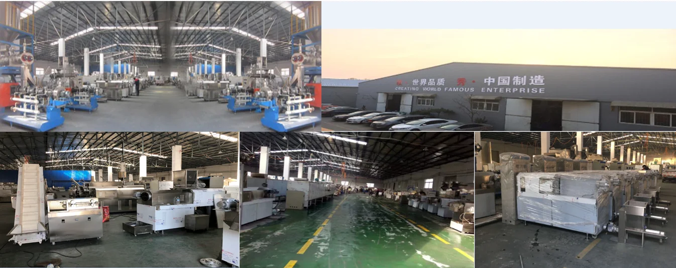 Puffed food equipment: food extruder, twin screw extruder, single screw extruder, breakfast cereals/corn flakes production line, fried and baked snacks production line, pet food production line, fish feed production line, textures soya protein production line, modified starch production line, bread crumb production line, laboratory twin screw extruder, nutritional rice production line, etc.