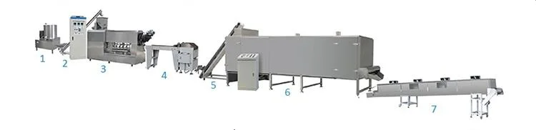 1. Mixer --- 2. Screw conveyer --- 3. Single-screw extruder --- 4. cutter---5. Hoister ---6.Dryer --- 7. Cooling conveyer