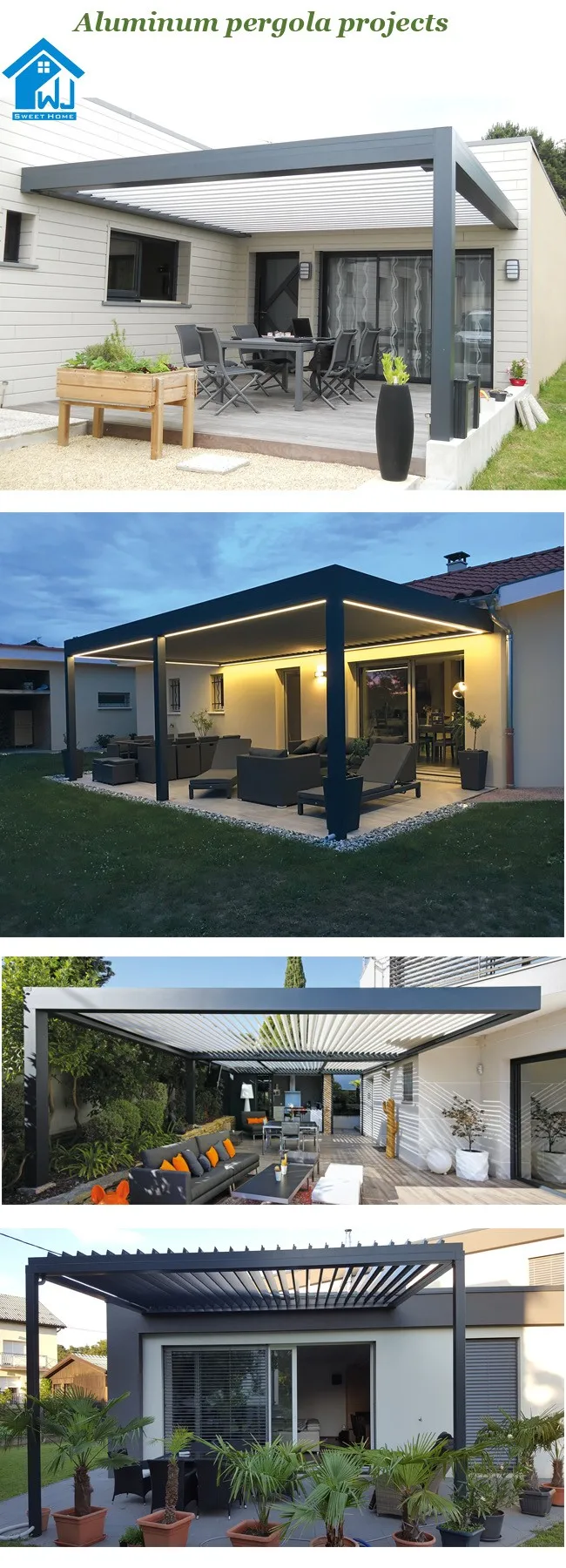 PergoLam is a combination between pergola and horizontal louver which is completely made of aluminum and allows light and breeze when open.