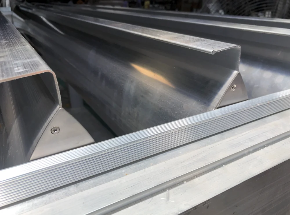 Using an electric telescopic engine connection system through parts and aluminum extrusions specially designed, the slats are dosed completely sealed preventing the passage of light and water. When closed the slats become channels that carry the water to the sides that have their own system of canals and water should turn towards the poles where it drains.