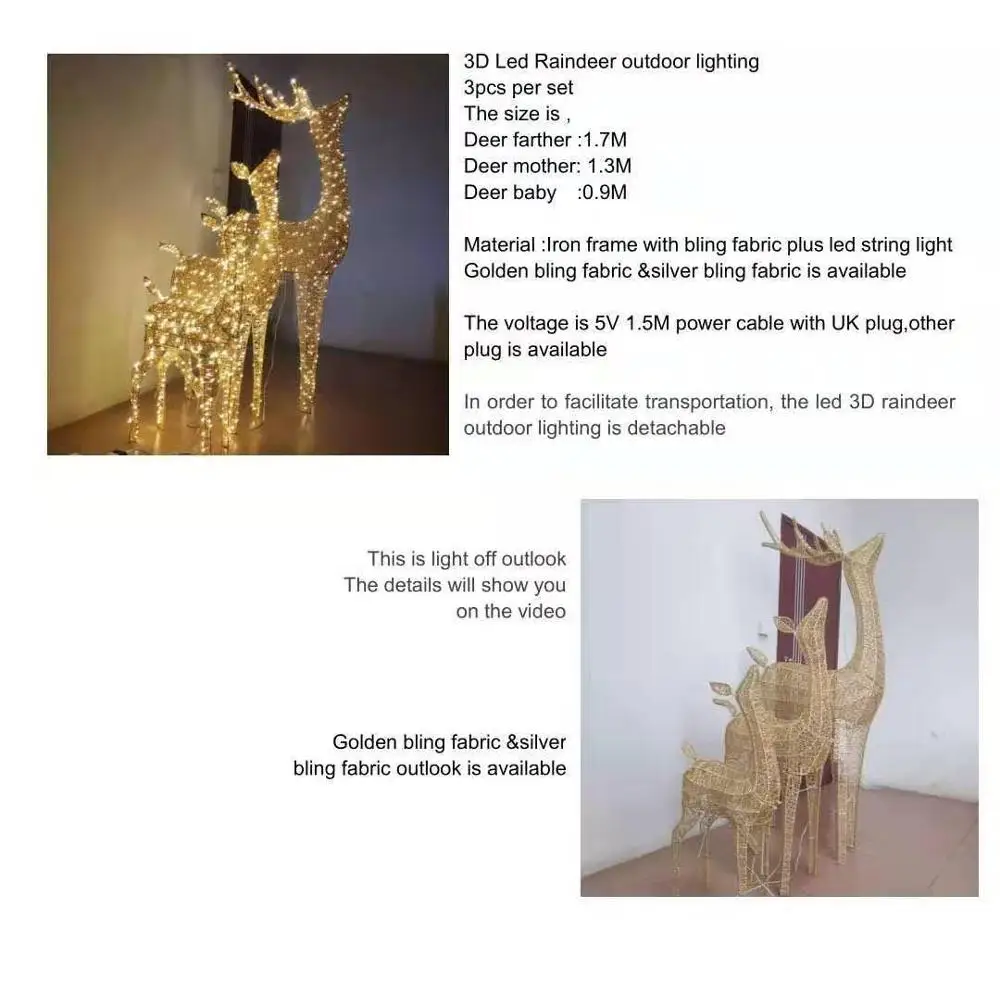 Один набор для нового дизайна дома, сада, торгового центра, Рождественское украшение, 3D led, олень, мотив, три коричневых коробки, 87*38*33 см, 66*40*26 см,