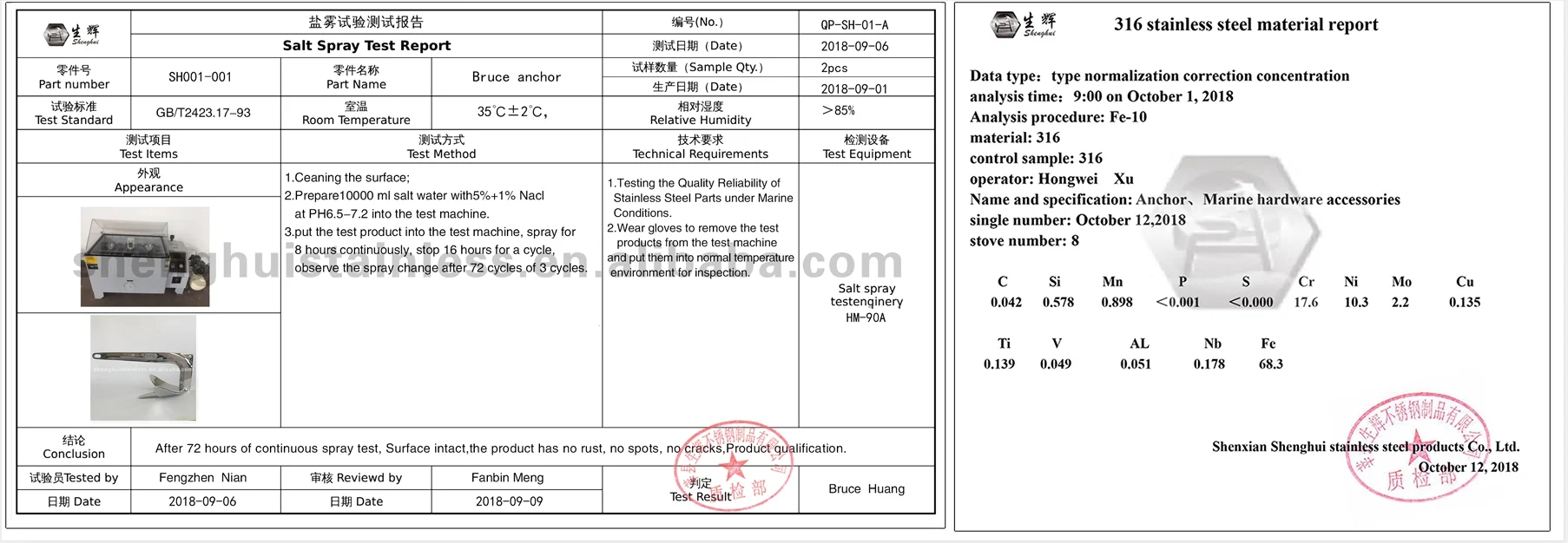 Test purpose:To test the quality of stainless steel parts in harsh marine environment.