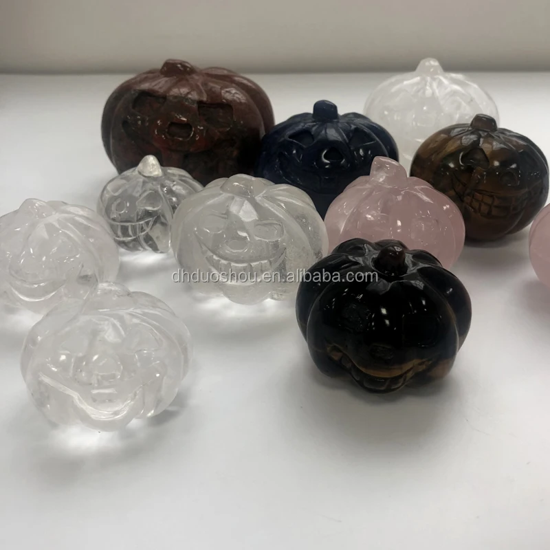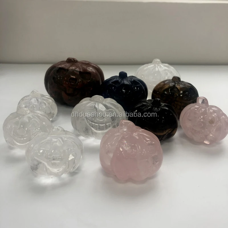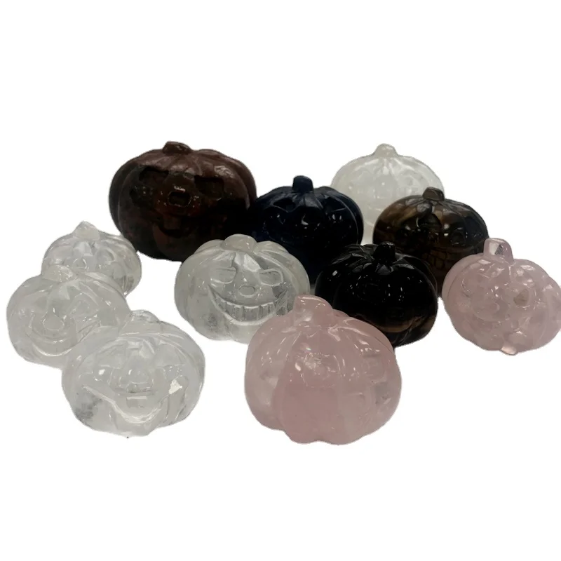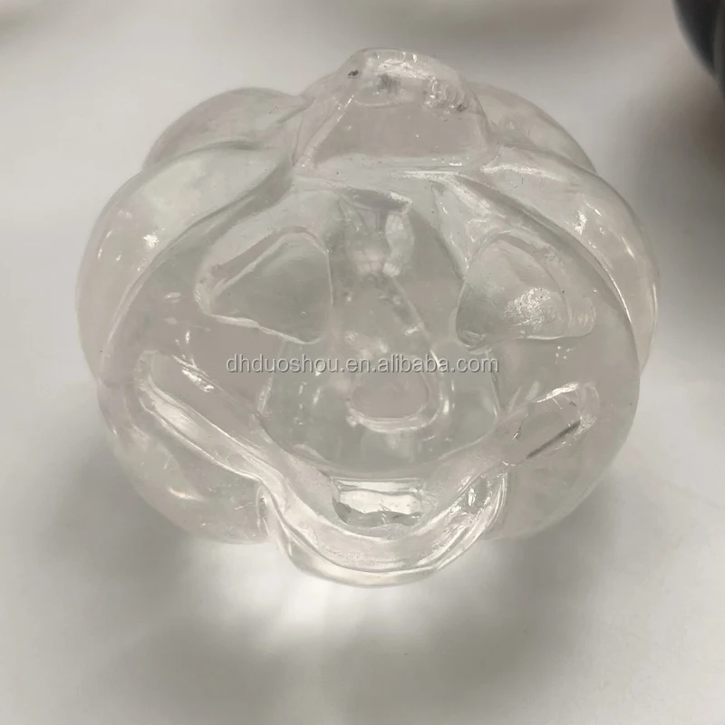 Hot Sale Hand Carved Natural Clear Rose Quartz Crystal Pumpkin for sale Halloween Gift