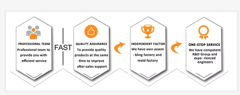 В настоящее время у нас есть более 20 инженеров R & D команда, более 150 рабочих производящих линии, 30 профессиональных сотрудников по проверке качества, 8 комплектов современного оборудования для автоматизации и различного высокоточного испытательного оборудования. У нас есть выдающийся инженерный технический персонал и превосходное управление. Мы придерживаемся принципа: качество во-первых, клиент в первую очередь. И поставляем высокое качество продукции и удовлетворительное обслуживание для всех наших клиентов.