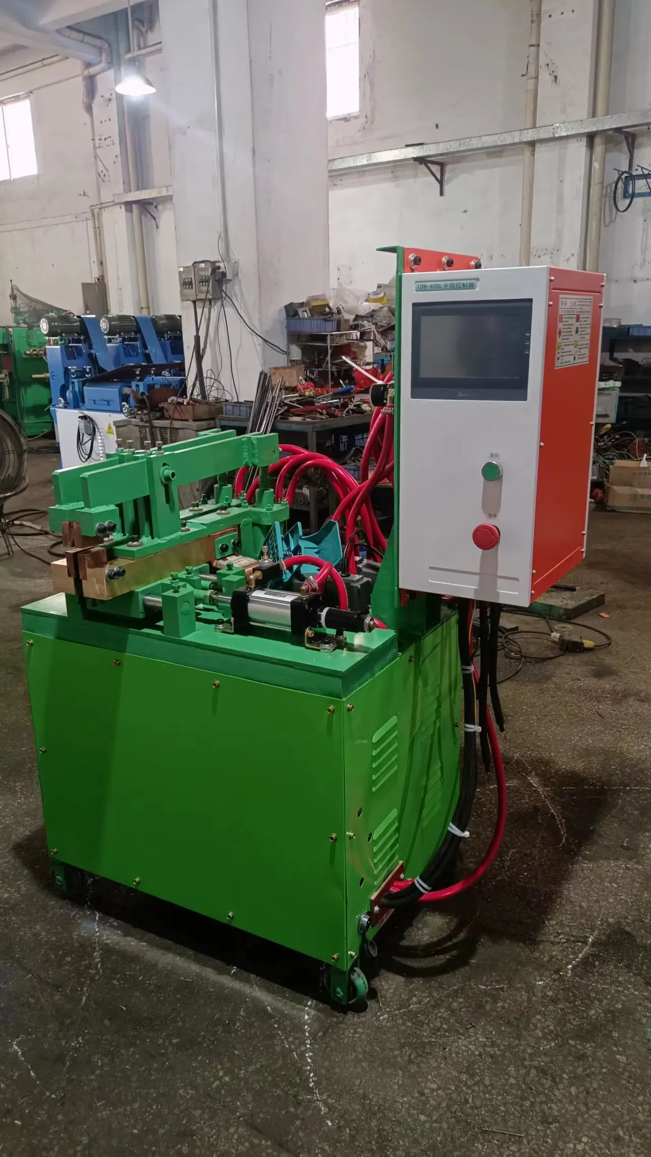 Our company mainly produces and sells welding equipment and hardware machinery, has 23 years of R & D and production experience, mainly all kinds of AC resistance welding machine (spot welding machine, butt welding machine Row welder, bump welder) and intermediate frequency welder Ac frequency conversion welding machine and all kinds of straightening machine, widely used in all kinds of hardware products factory, iron wire hardware process factory, all kinds of stainless steel products factory, lamp shade factory, all kinds of hardware basket, mesh, mesh basket, pull basket, shelf, storage rack factory, sheet metal case, cabinet, automotive parts factory welding and forming process. The machine adopts