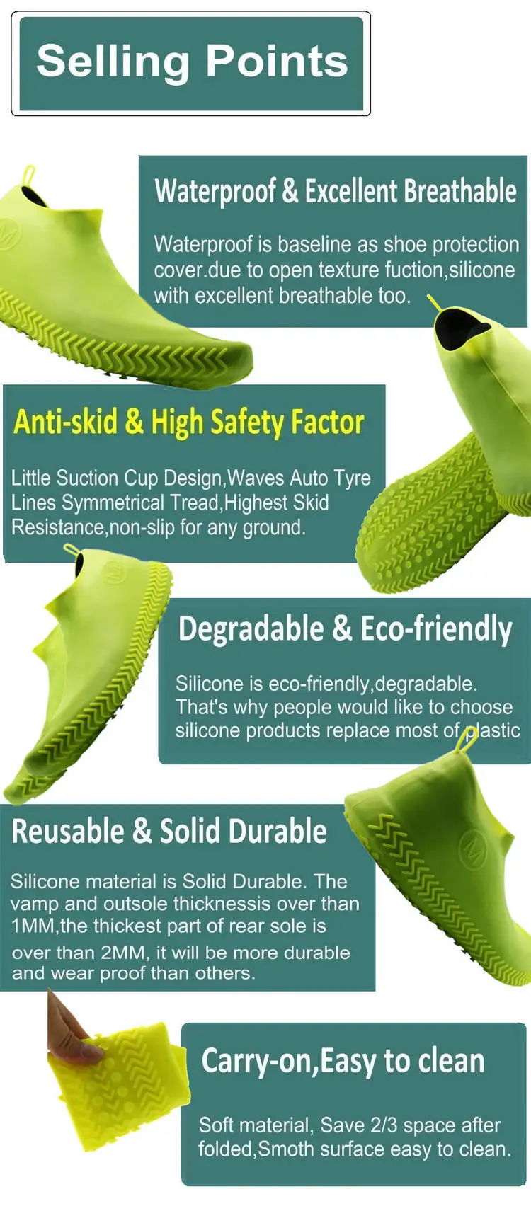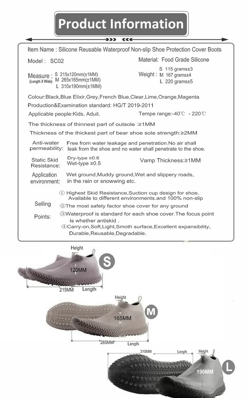 NAME: | Reusable Eco friendly Non Slip Waterproof Shoe Cover | MODEL: | SC02 | ||||||||||