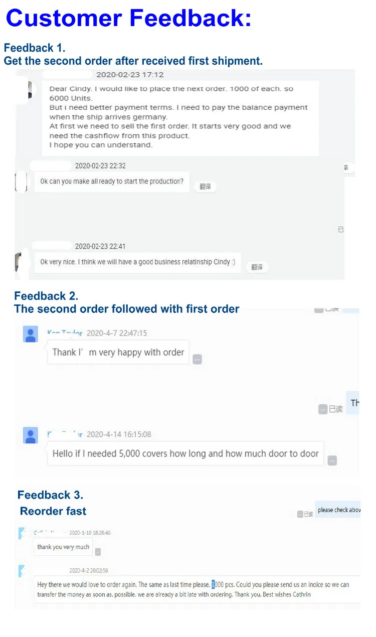 Trial order | 500~1000 | 7 days for stock | 7~10 workdays for customize | Express or By Air | ||||