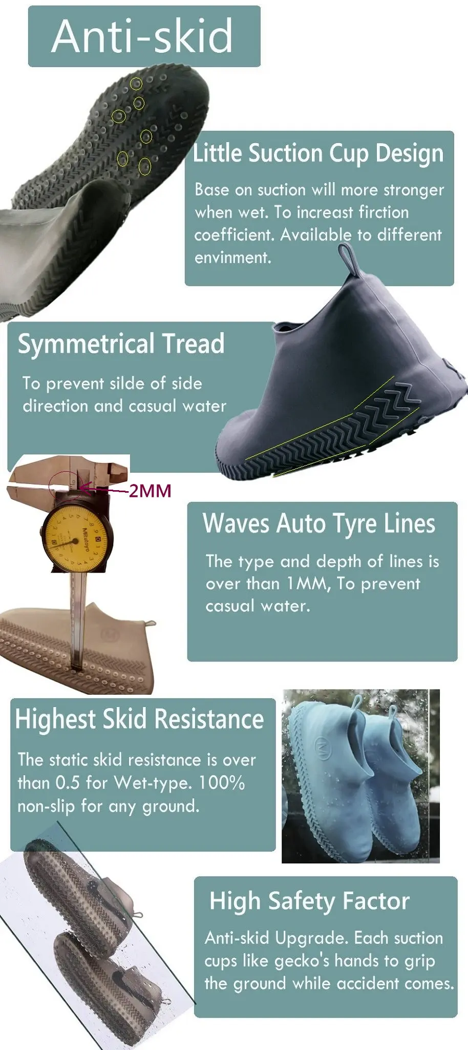 SELLING POINTS: | Highest Skid Resistance,Suction cup design for shoe. Available to different environments. | ||||||||||||
