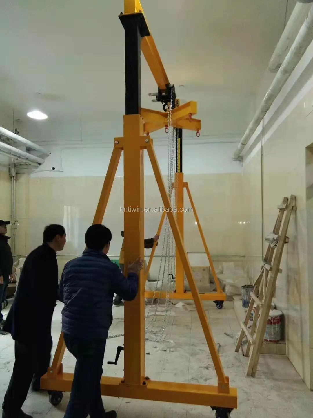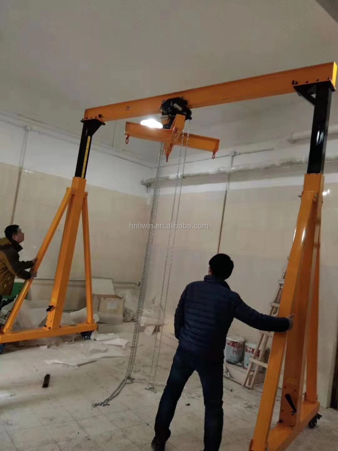 Girder are packed by plastic ,hoist and electric equipments are packed by wooden box for Railess Mini Material Handling Gantry Crane