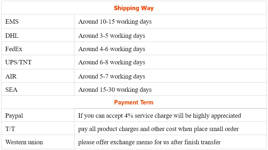 Payment term | 30%deposit +70% before shipment by TT | ||||