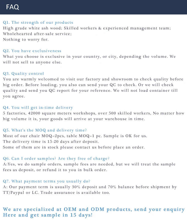 6. Free Inspection Service. Will send you inspection photos & videos for every piece before delivery. | ||||||