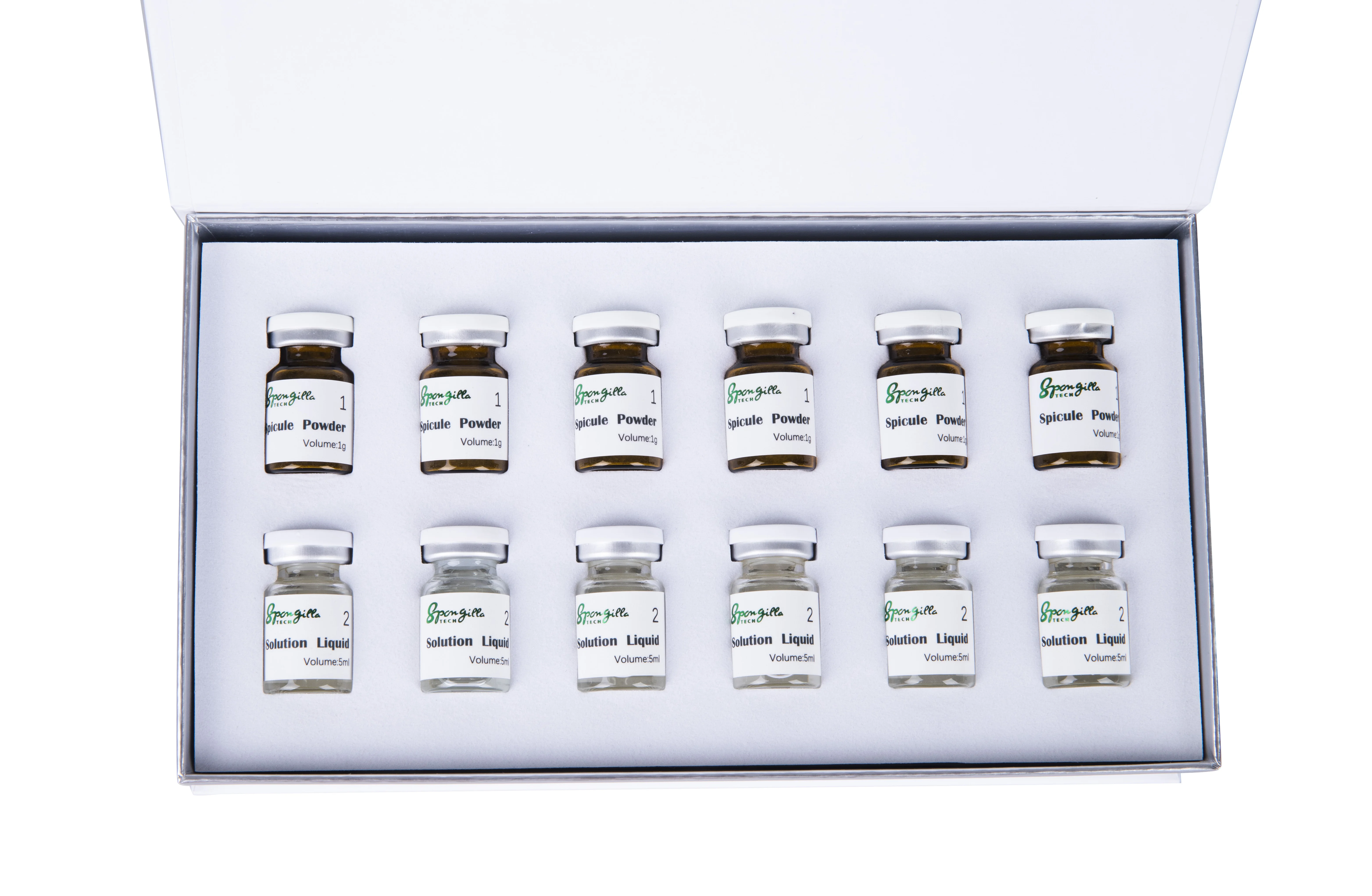 Contents inside kit box: | Spicule powder 1g x 6 Solution Liquid 5ml x 6 |