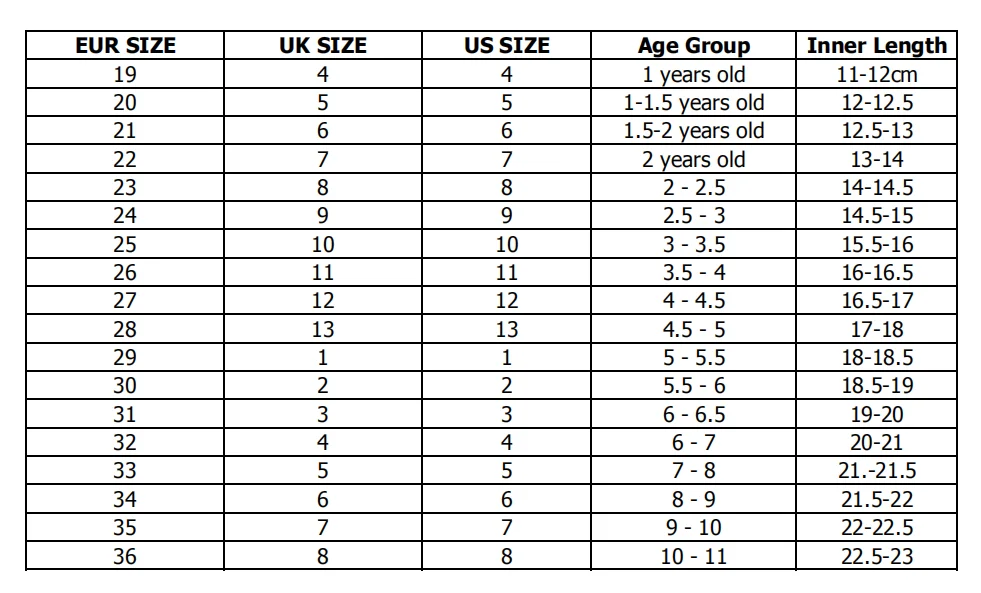 EU Size | 25-30 31-36 | ||||