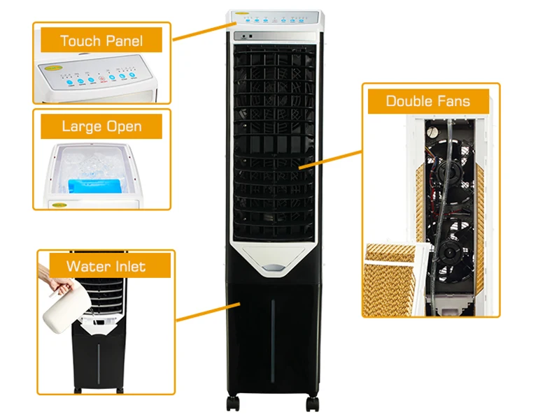Q: What different from air cooler and air conditioner ?A:Evaporative Air Coolers cool much differently than Portable Air