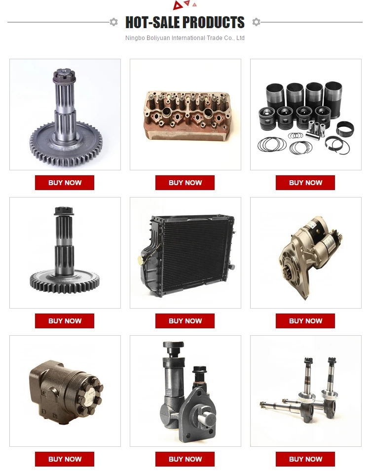 Ningbo Boliyuan International Trade Co., Ltd. является международной торговой компанией с полным производственным оборудованием, сильной технической силой, И экспортные части сельскохозяйственной техники, одобренные государственным управлением внешней экономики и торговли и общим управлением таможни. Это филиал Xinjiang Black Diamond International Trade Co., ltd. головной офис был основан в 2003 году и расположен в Урумчи, Центральном городе «One Belt One Road». После 18 лет напряженной работы членов Black Diamond мы установили хорошие отношения сотрудничества с бизнесменами из России, Казахстана, Киргизии и других стран Центральной Азии. Для достижения более высокого качества продукции и лучшего обслуживания клиентов, Ningbo Boliyuan International Trade Co., Ltd. была основана в Ханчжоу Bay New District, Нинбо-Сити в 2018 году, И его бренды продаются в другие страны, Юго-Восточной Азии, Венесуэле и Восточной Европе. Европа и т. д. Основной объем деятельности компании применим для Mtz-80/70/1221 T-40/T-75/T-130 частей, K-700 частей, maz/kamaz частей, пресс-подборщик частей, комбайн частей, газонокосилки частей, приводной вал, подъемный цилиндр и части Cummins.