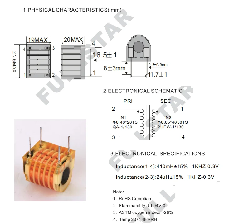 Material | Ferrite Core, bobbin, copper wire, epoxy |