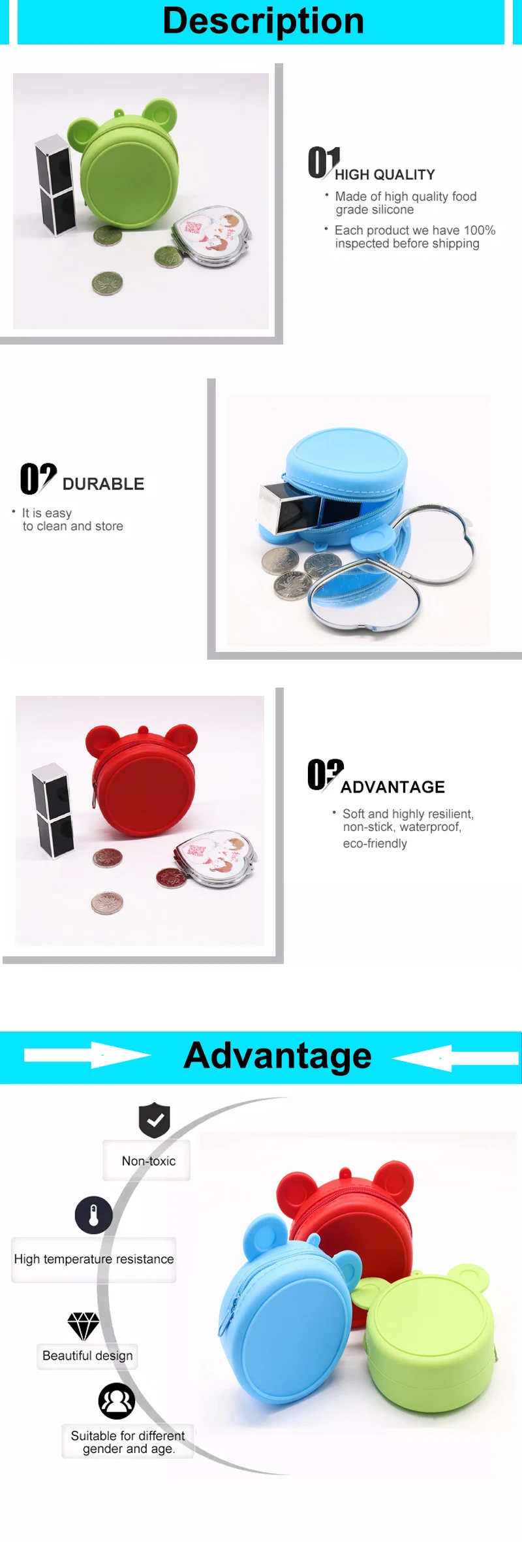 Item Name:Cheap custom cute round shape silicone woman purse |