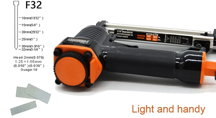 The Freeman F32/F30 Pneumatic Nail Gun has a lightweight aluminum design and a tool-free adjustable exhaust that conveniently directs exhaust away from your face. The F32/F30 Pneumatic Nail Gun is great for interior and exterior finish and trim, furniture, cabinet work, crafts, and hobbies.