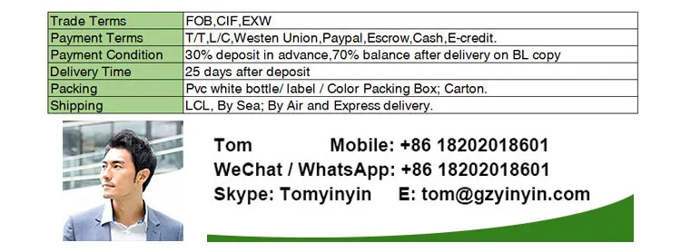 Q3: Can you print my logo on the packing or bottles? A: Yes, your logo on packing box can be printed. On bottle also available. | ||||||||