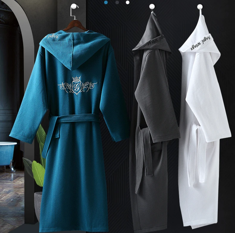 Супердышащий махровый банный халат из 100% хлопка, зеленый мужской Халат с капюшоном для взрослых US $8.10-$8.50