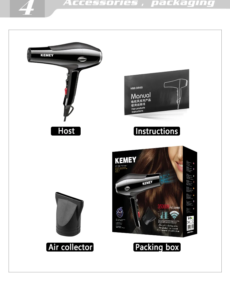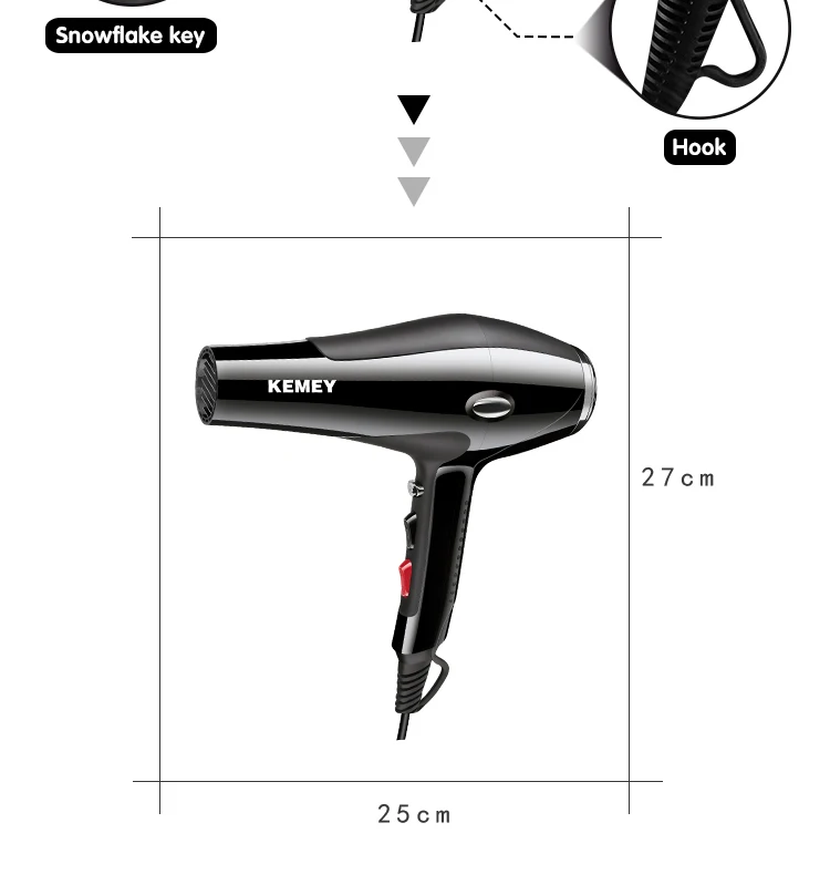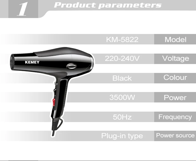 Горячая Распродажа KEMEY KM-5822 Профессиональный высокомощный роскошный фен для волос мощностью 3500